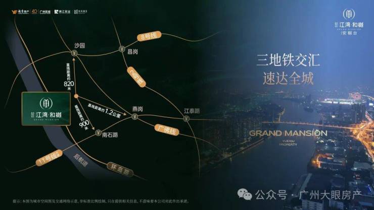 换乘之王8号线沙园地铁站:约800米(百度地图直线测距)