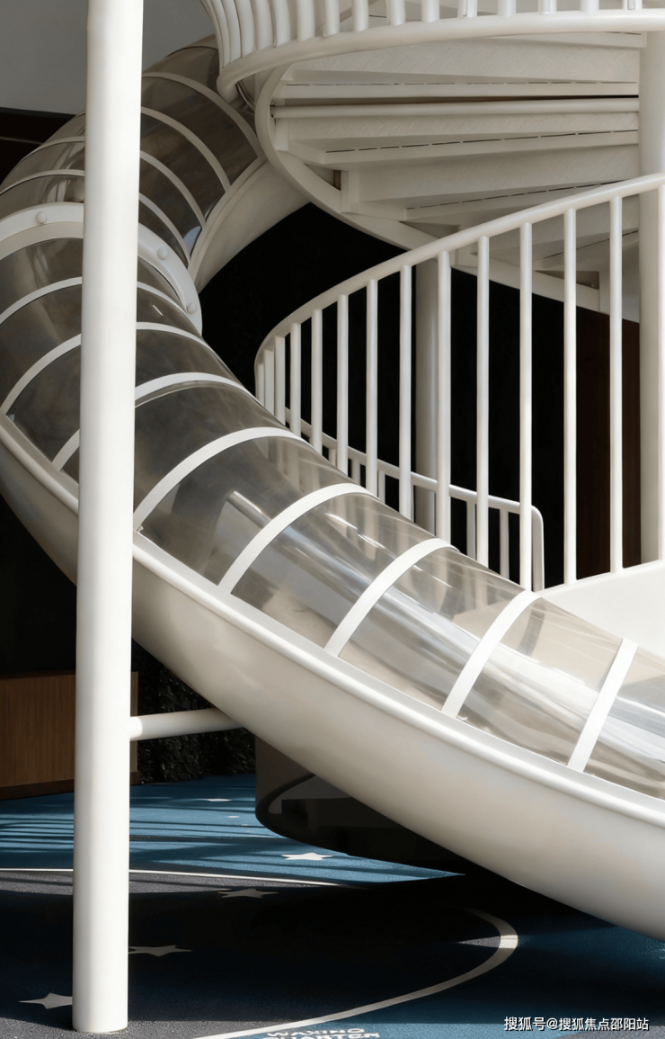 它不仅仅是视觉的地标,更是功能的载体。螺旋结构内暗藏滑梯功能,将艺术观赏与童趣玩乐无缝衔接。当孩子们在其中嬉戏时,它是一座充满乐趣的游乐设施;当人们驻足欣赏时,它又成为极具张力的现代雕塑。
