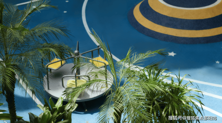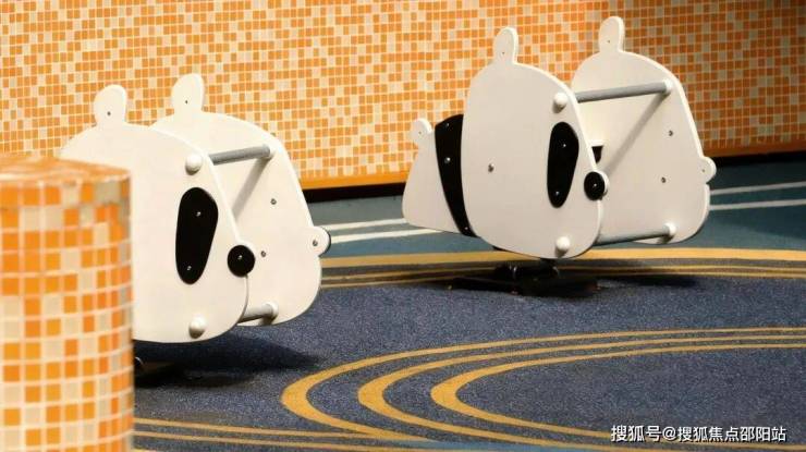 蓝色地胶绘着行星轨迹,红色游乐设施如外星基地般错落其间。俏皮的熊猫摇摇乐、旋转设施如同散落的星际装置,邀请孩子们开启一场宇宙冒险。墙面镶嵌的行星模型不只是装饰,更是开启科学好奇心的钥匙。