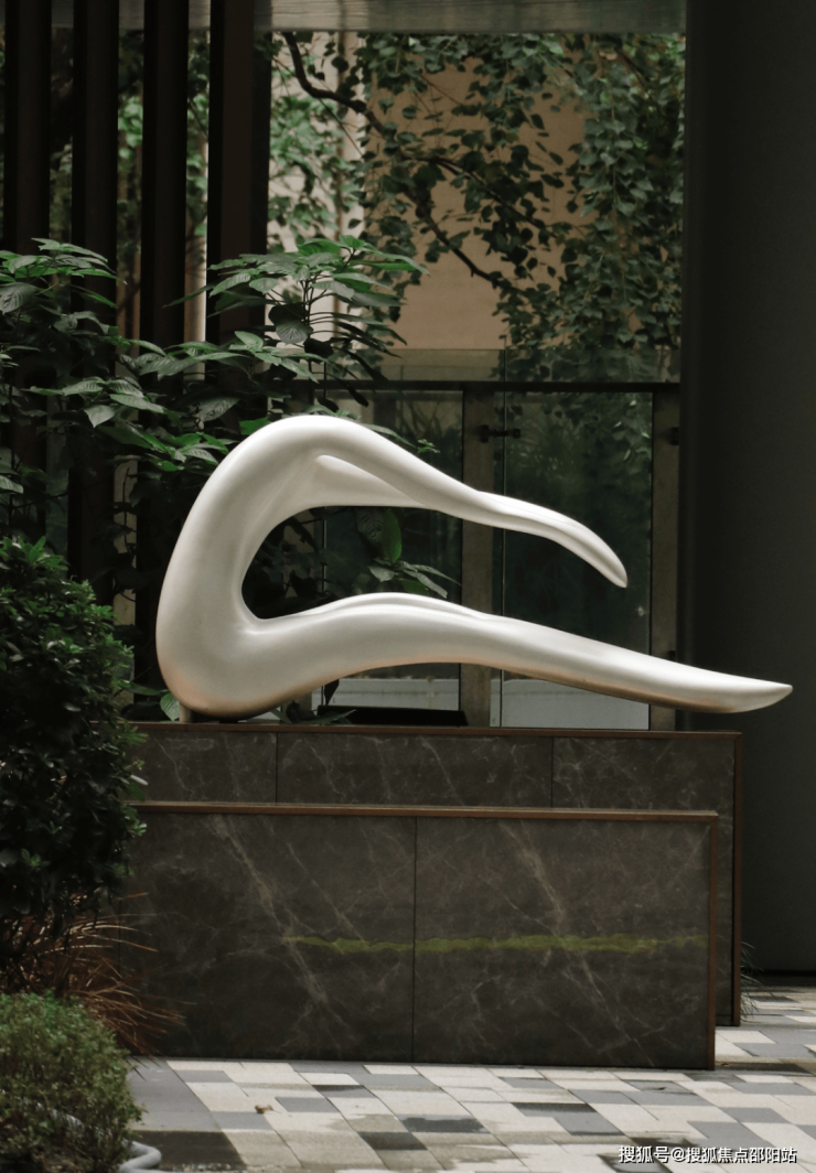 在社区的中心,一座白色金属打造的巨型鸟笼装置,以其极简的线条和独特的造型,成为保利天汇的艺术灵魂。