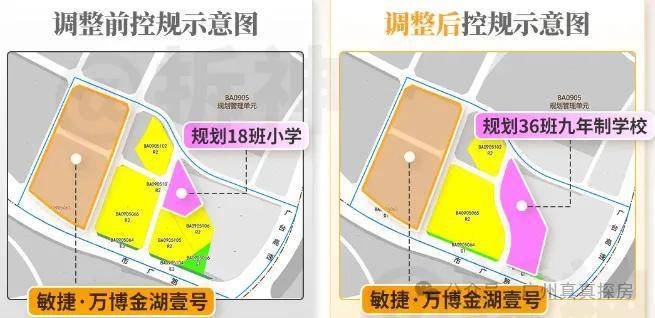 就在前几天,规自局公布调规方案,市广路北侧地块调规为36班九年制学校。(市广路北侧地块控制性详细规划局部调整批前公示)按照广州标准,36班九年制学校,已经是一个片区的主力学校了,而且参考番禺政策,很大概率有直升优势。