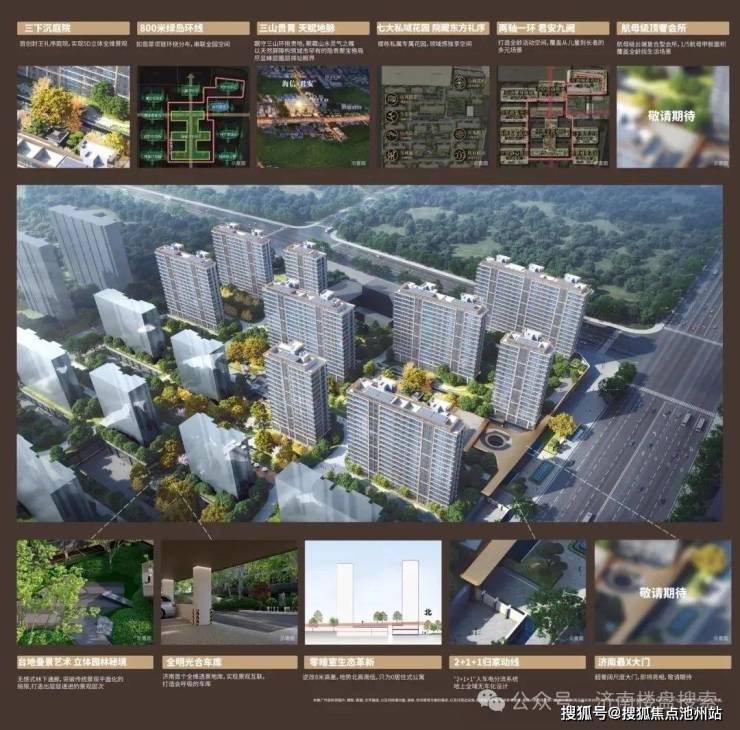 小区配置方面,海信对小区地面做了抬高设计,采光、视野好;外立面采用干挂铝板+天然石材+270度环幕全景落地窗,颜值挺高;在小区大门、下沉庭院、会所、车库等内部配置上也下了功夫。
