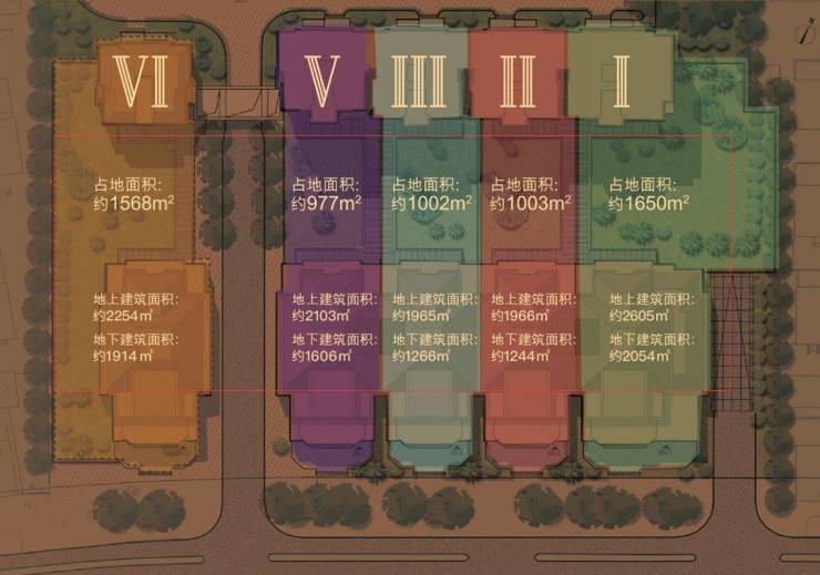 5栋海派洋房建筑,占地1.5-2.5亩,面积在3500-5000平米,每层层高约4.5米。