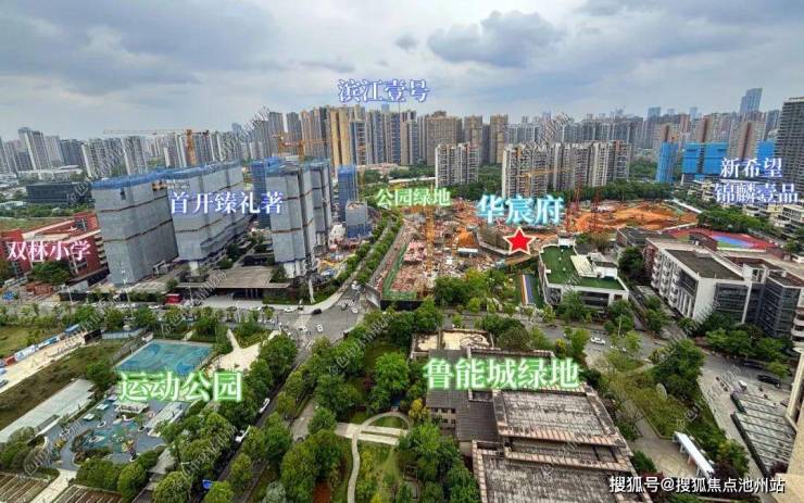 华宸府和天宸上院类似,均被多个公园绿地环绕。项目本身自带约9亩景观绿地,虽为市政公园,但根据现场施工情况,公园与住宅正同步施工中,后期小区大门将与公园融为一体。另外,项目东南侧的10余亩运动公园已基本竣工等待投用,还有早已郁郁葱葱的鲁能城配套绿地。
