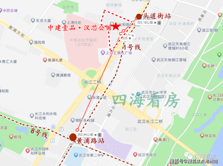 中建壹品汉芯公园位于汉口解放大道头轻轨1号线道街站旁,楼市中属于汉口滨江商务区,行政划分属于江岸区,距离内环线约300米,距离二环约1.6公里。