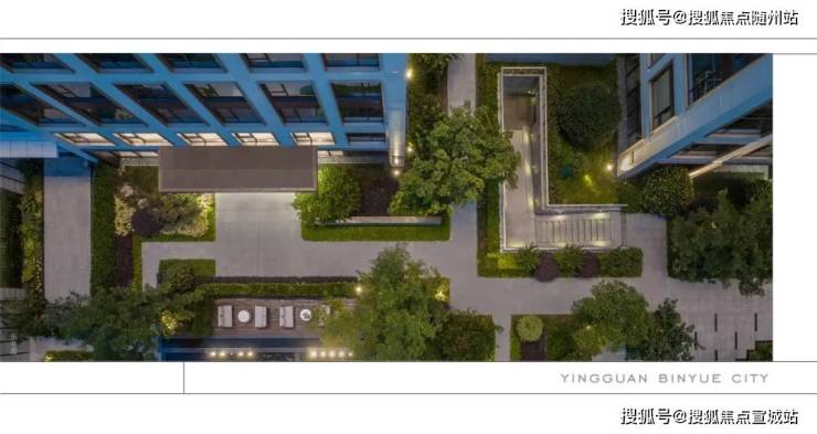 翠景围合:项目参照国际前沿审美,以稀缺的绿篱围合+商业绿环,划定静谧居住领域。