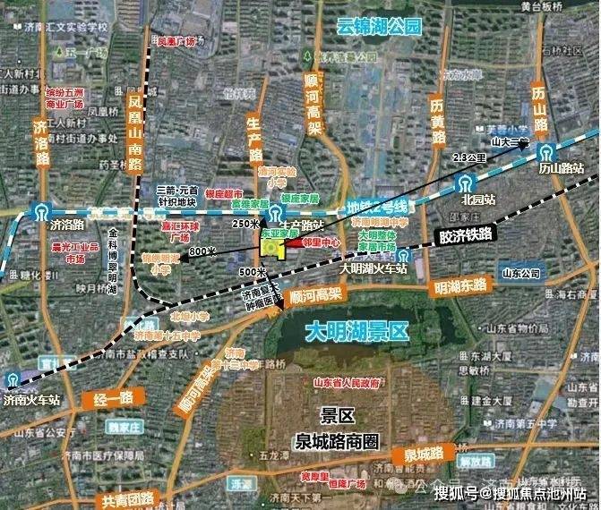 【区位】:项目位于大明湖以北约400米处,直线距离大明湖仅数百米,是近10年来大明湖1公里内少有的宅地供应,稀缺性极高。