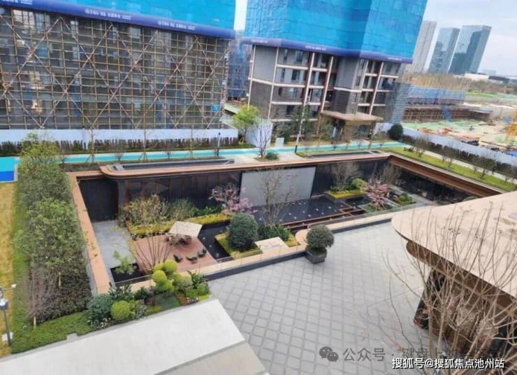 金茂府的下沉庭院搭建了多处平台,有大有小,有高有低,错落有致,使得整个造型不再是单调的方形,而是一种立体的异形,如高山流水般和谐自然。