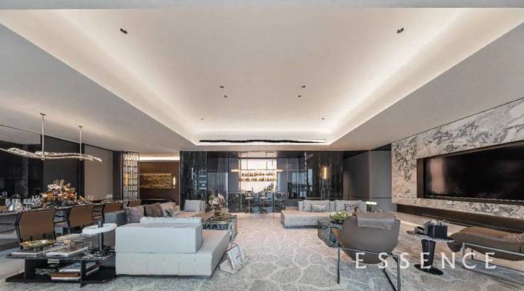 艺术基因:室内设计由叶飞团队执笔,560㎡"归逸"户型将东方哲思融入空间叙事,会客厅采用意大利Fendi白石材通铺