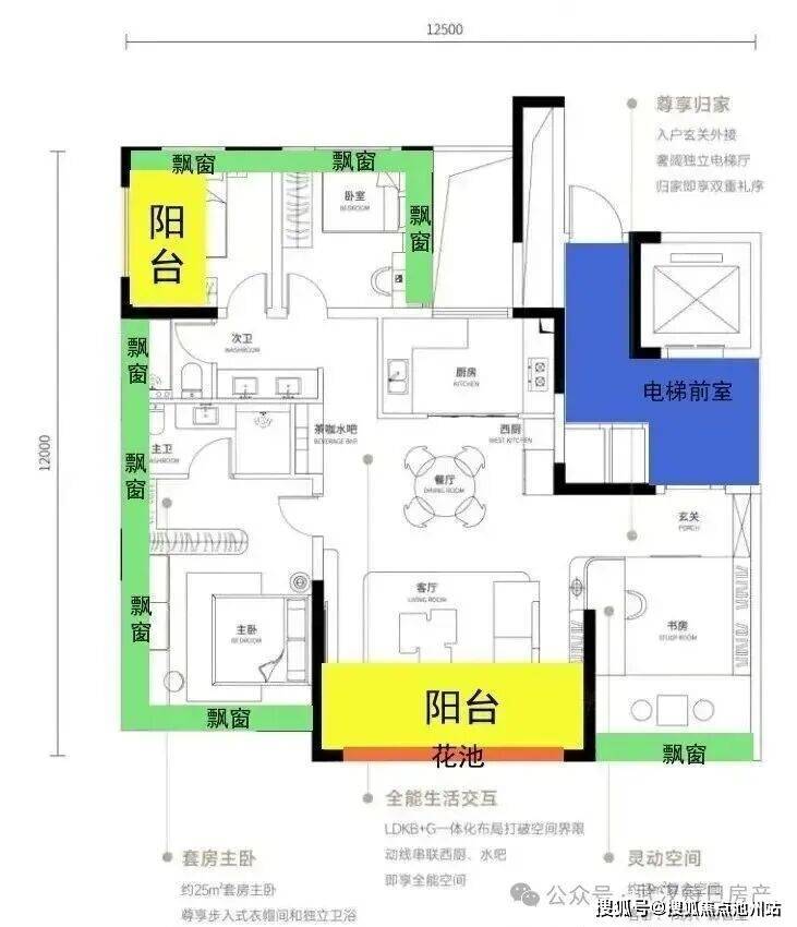 没有因为面积不同,而厚此薄彼,即使建面约127平小户型,也做到了两梯两户纯板式结构,带独立电梯前室的优越功能!