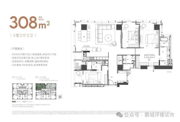 大平面大尺度定位,层高约3.6米,横厅设计确保奢阔观景面,全户型纵享环幕视野。项目打造建面约215-620㎡纯粹品质公寓,顶层为建面约1270㎡公寓产品。