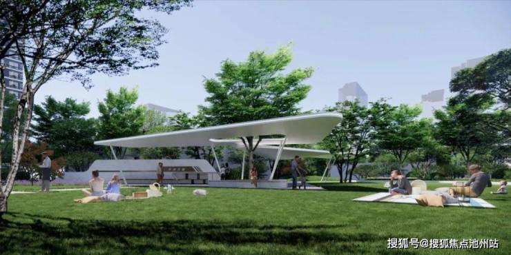 社区会客厅、邻里会客厅、架空层会所、乐活森林运动公园、四大主题花园、滨河景观长廊、环形跑道等串联社区内全龄休闲场域。