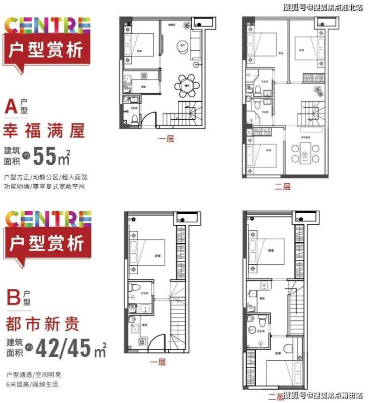 【规划亮点】一字型格局, 纯板式结构,空间通透, 采光视野俱佳。6米层高,买一层用两层,空间自由分割组合。