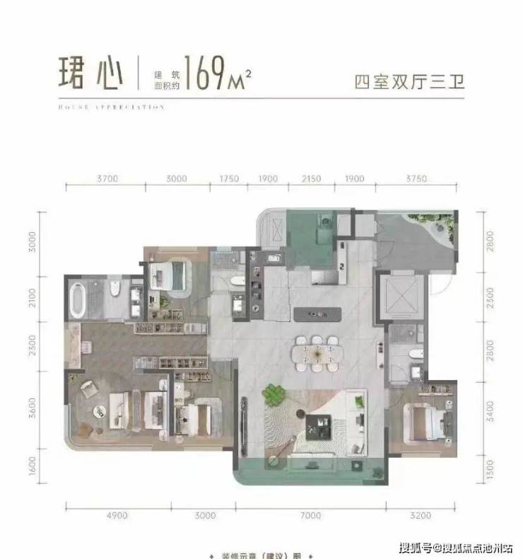 173㎡户型:3.3-3.7万/㎡