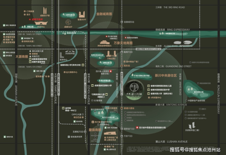 项目择址高新新川创新科技园核心区,该区域作为成都"南拓"战略的重要支点,已形成"产业+居住"的良性发展格局。目前园区已引进百度Apollo、新华三研究院、快手电商总部等百余家科技企业,美敦力、爱奇艺等16个项目已建成投产。得益于1.4的超低整体容积率和17.5%的高绿地率,新川板块已成为主城稀缺的高端居住区。