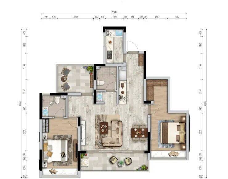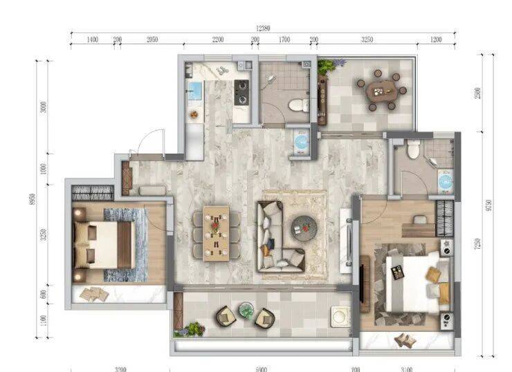 【阔境美宅:三室两厅两卫 建面约103-105㎡】