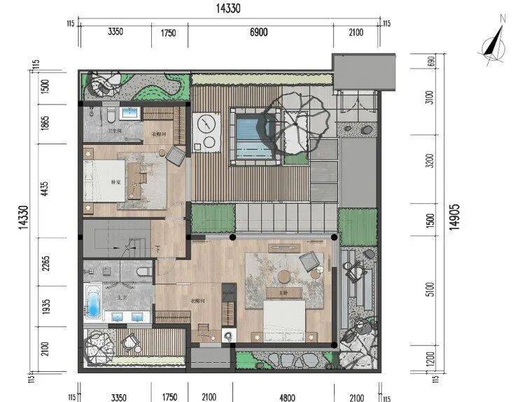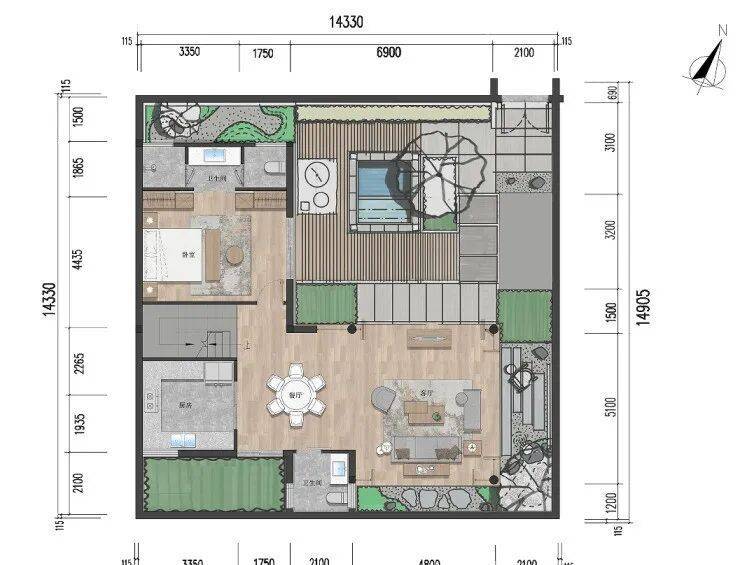 【独栋小院:三室两厅四卫 建面约97㎡】