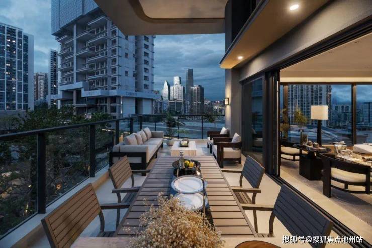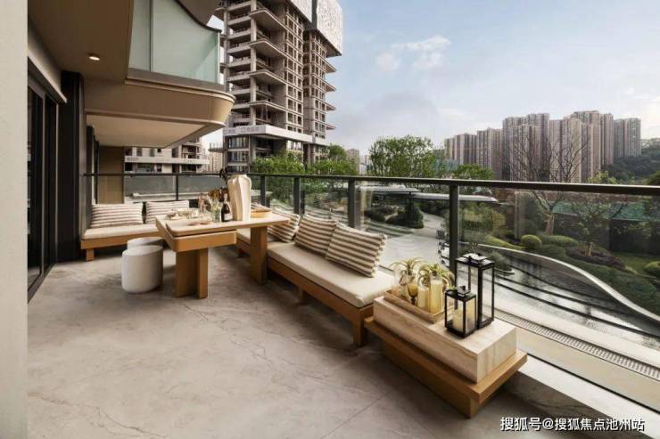 连接客厅的是约28-33平米的空中露台,进深约3.9米,宽敞大气,很多生活场景比如烧烤派对、运动健身、围炉煮茶等都可以在这里轻松实现。