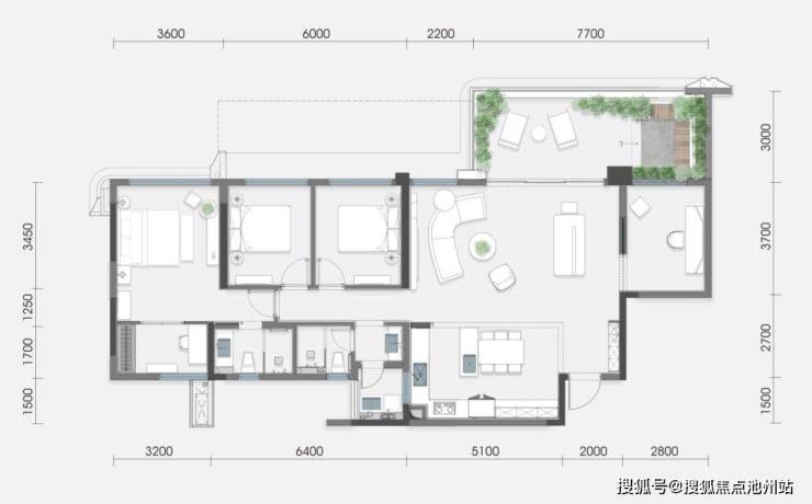 4房设计,每个卧室空间都不小,完全能满足绝大多数家庭的需求,还有建面约20平米的露台,作为室内空间的延伸,也给了生活更多的想象力和可能。