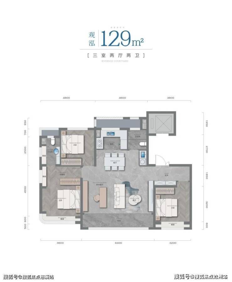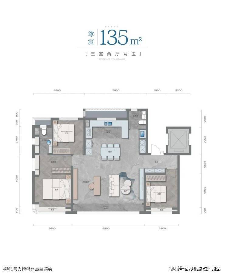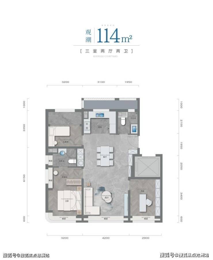 户型上全部做三室两厅两卫,赠送面积较多,得房率高。