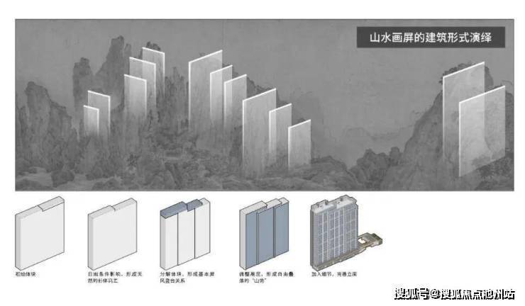 汲取永嘉山水灵感、勾勒“山水画屏”美学立面,通过对称展开的建筑布局来表现屏画的展开之姿。塔冠跌退造型和弧形转角玻璃,大面积玻璃,精心设计的金属框线,凸显立面层次和立面质感。