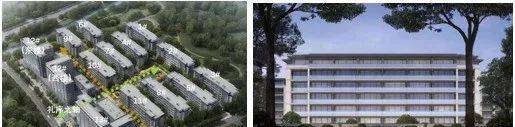 项目规划了11幢多层和3幢小高层,整体采用行列式布局方式,其中北侧设置两栋康养公寓(12号楼东楼和西楼)和两栋LOFT颐乐公寓(11、13号楼),其余均为平层颐乐公寓。