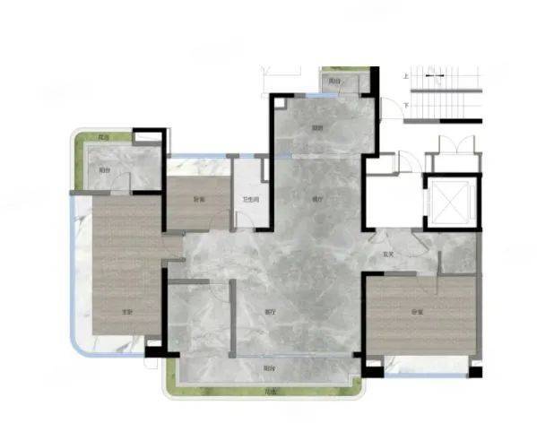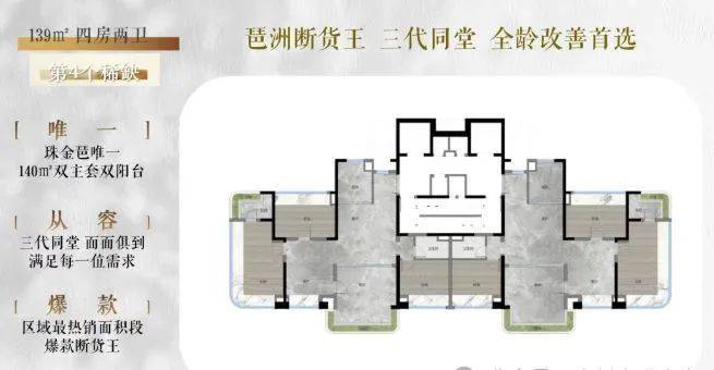 :虽数量相对较少,但设计精巧。作为南北对流双阳台四房户型,通风采光极佳。空间布局合理,动静分区明确,保障居住的舒适度。客厅与餐厅相连,视野开阔,连接阳台,可欣赏社区或周边景观。四个房间大小适中,能满足家庭不同成员的居住需求,无论是作为卧室、书房还是儿童房都游刃有余。专梯入户设计,增加了居住的私密性与尊贵感。