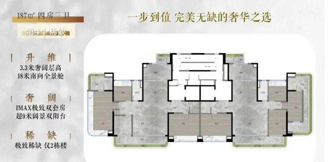 物以稀为贵,越是不可复制的产品,越能凸显价值所在。6#园景楼座傲踞观景正席,远离闹市喧嚣。坐拥超宽楼间距,享优越的通风采光条件及高私密性体验,IMAX超级景观视野瞰尽满园风景。自然绿意漫入天际流光,远近层叠,一窗一框皆成流转画卷。三面环瞰盛景,唯此一栋。