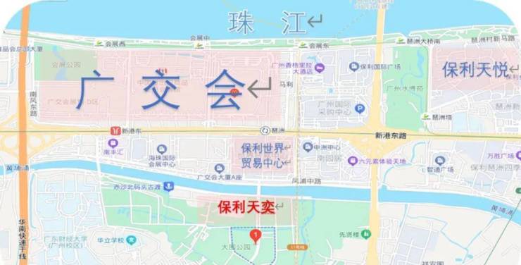 交通条件:距离地铁8号线和11号线的琶洲站约900米,周边直线1公里内有14个公交站,还有多条主干道,交通便捷。