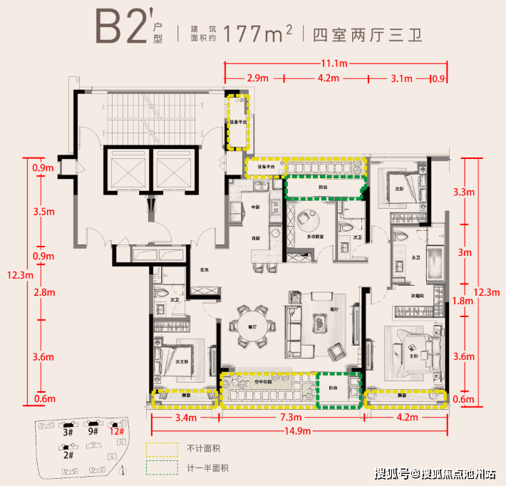 除了层高不低于3米,楼板厚度15cm等硬性设计规定,包括得房率在内,第四代住宅从娘胎里就自带高人一等的光环。