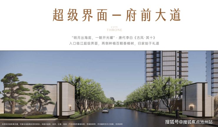到大门之前,天曜序在两个地块之间的洪殿北路,花巨资打造一条府前大道。
