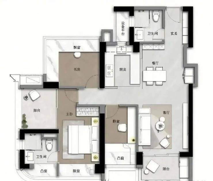 「诗意东方」设计语言,于从容内敛中彰显高级质感,东南向兼具采光与通风优势,低区直面花园景致,四房空间格局方正,适配注重居住格调的改善家庭。