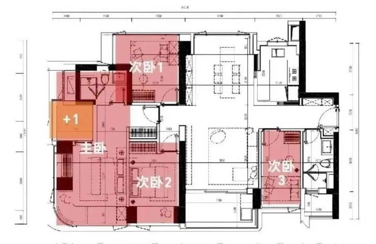 126㎡4+1 房 2 卫・朝西(客厅南北向)