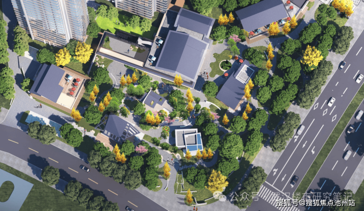 遗憾的是项目并未做现在流行的下沉式庭院及会所,但围合式布局营造了较大的园区活动空间。因为报规是建筑公司简单示意图,具体的园林风格特色见后期景观方案。