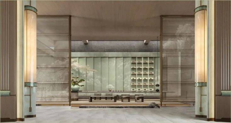 园林采撷《梁园飞雪图》画中意境及神韵,引入曲水飞虹、万倾涵碧、松间、观澜、林隐等景观组团,再现“枯山水”东方禅意画卷,缔造具有东方韵味的新中式之美。
