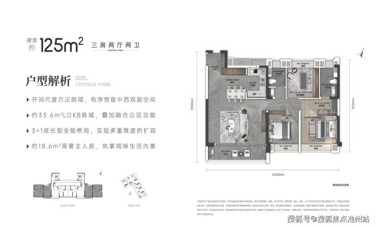 约33.6㎡LDKB一体化聚厅/预留中西双厨岛台/约18.6㎡高奢主卧套房