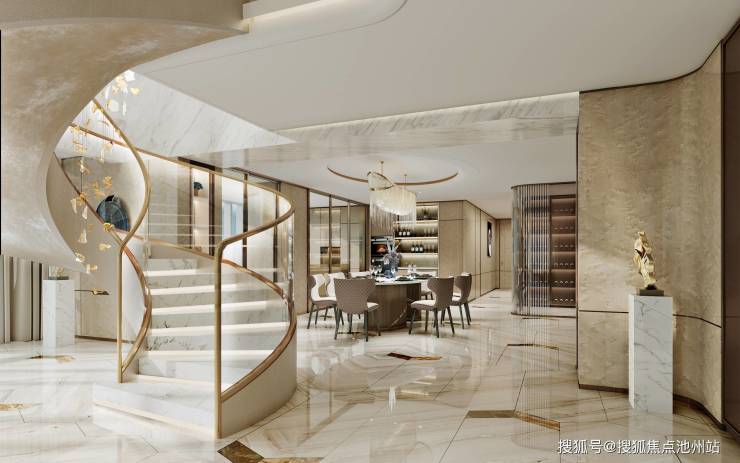 汲取世界奢宅建筑精粹,采用香槟金铝板干挂+LOW-e大面玻璃,以现代极简设计革新立面美学风尚。