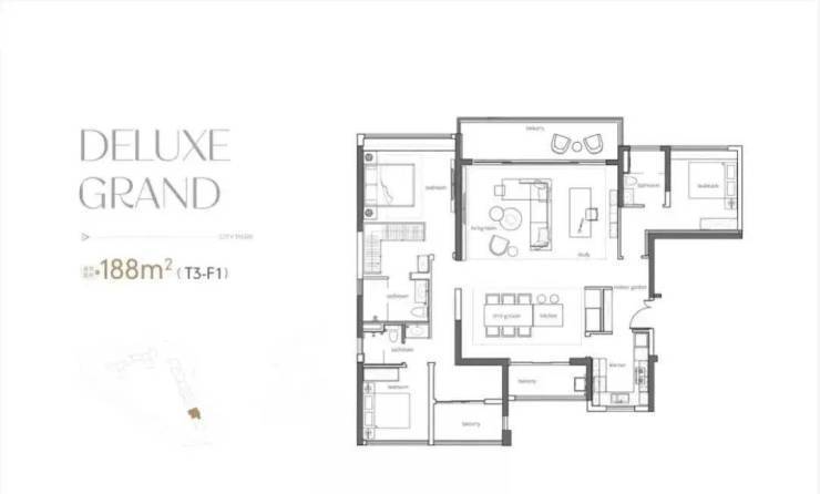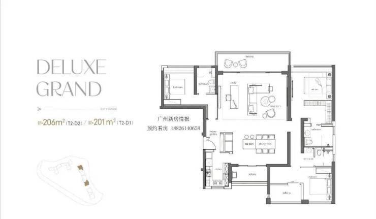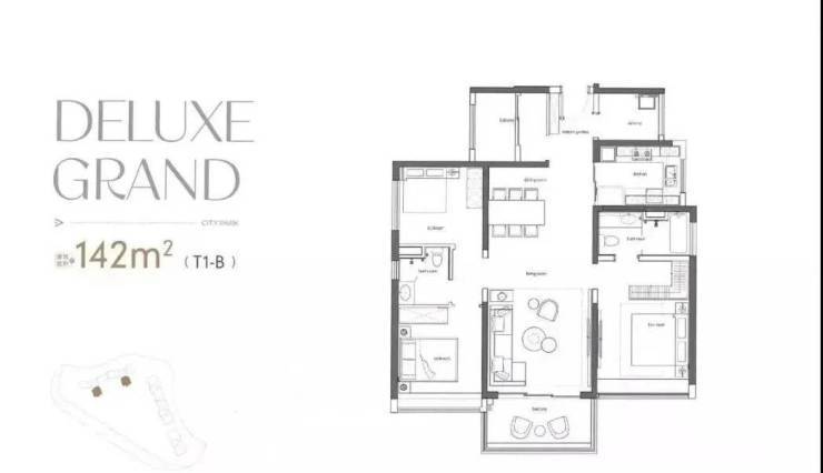极致户型更新塔尖体验建面约142-208㎡大平层实现了视野、尺度、交标上的三重突破。
