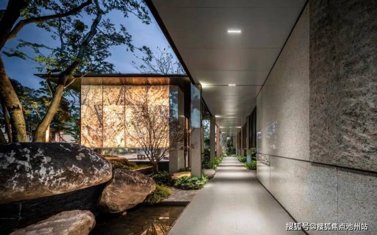 北区配备约3000㎡酒店式会所花园,地下会所承载艺术展示与社交功能;南区通过自然山水的礼序山石园林步入约1500㎡地上泛会所花园区。设计汲取古代文人雅士隐逸山林的空间意象,融入山、泉、林、台、石等元素,巧妙结合书院文化内涵与自然意境,营造富有东方哲思的景观体验。