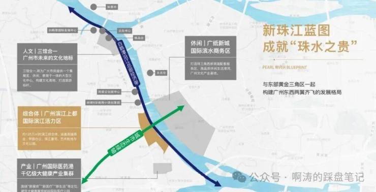 8大业态城市综合体,规划有大型商业,企业总部,星级酒店,滨江公园,文化艺术中心,教育医疗配套,高端居住及TOD立体交通于一体,广州唯一最全配套大体量的综合体。