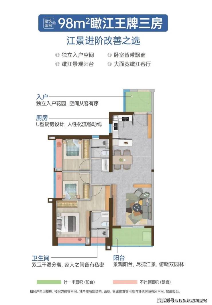 建面约98㎡,升级大面宽可瞰江客厅,延伸生活空间。同时,还有独立主套,三代同堂互不干扰。