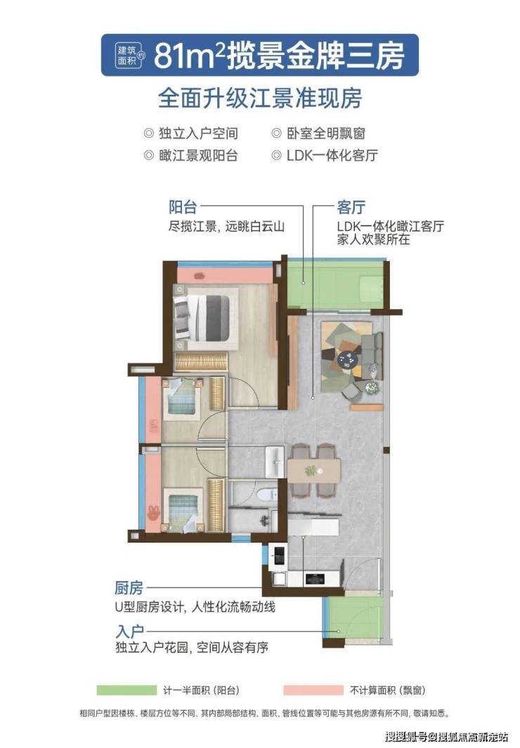 建面约81㎡起步就能望江,也是市场独有。