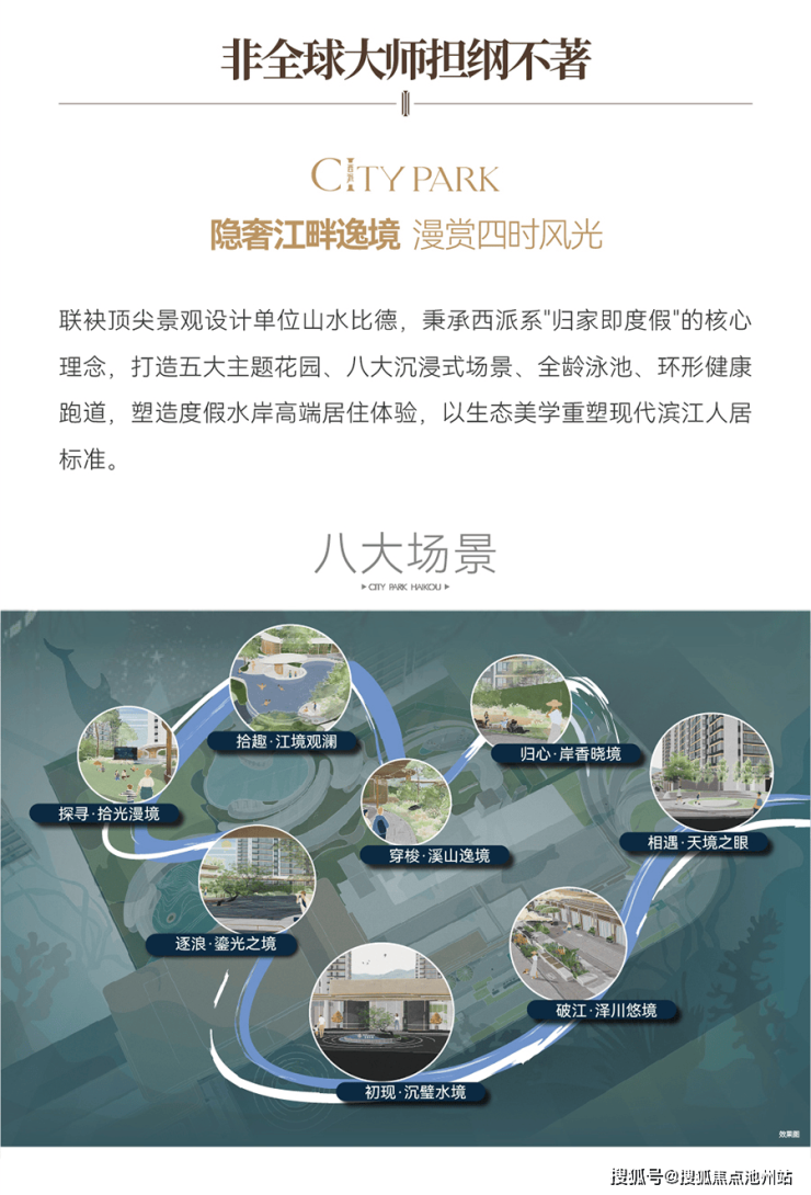 8、山水比德顶尖设计团队操刀,园林融合“归家即度假”理念,规划五大主题花园及八大沉浸式场景,打造水岸生态社区