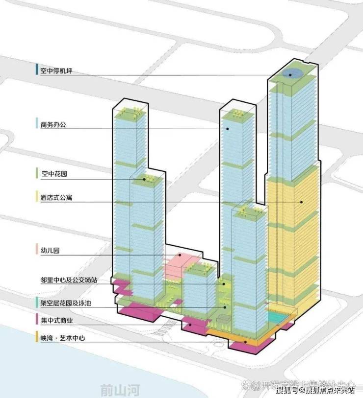 深圳湾1号由8座塔楼及1座商业建筑组成,由中央水轴分成南北区,融合顶级公寓、总部办公、传奇莱佛士酒店、定制商业及深湾会于一体。