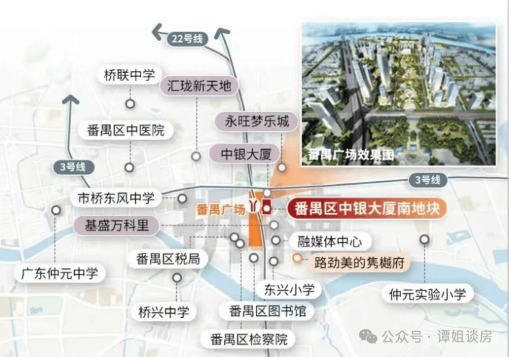 项目就在地铁3号线番禺广场站上盖,是地铁3号线18号线和22号线的交汇点,1站可到万博,3站可到天河2站可达广州南站。