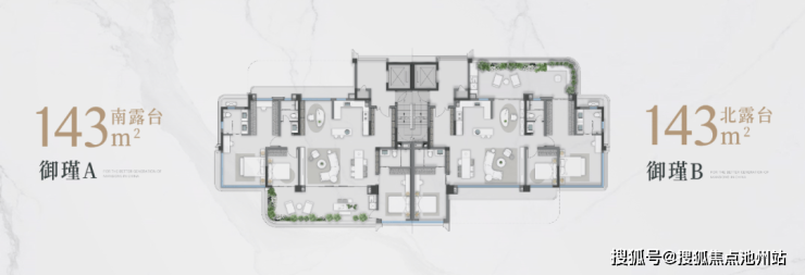 建面约143㎡的南/北花园户型,承载多样化的生活方式