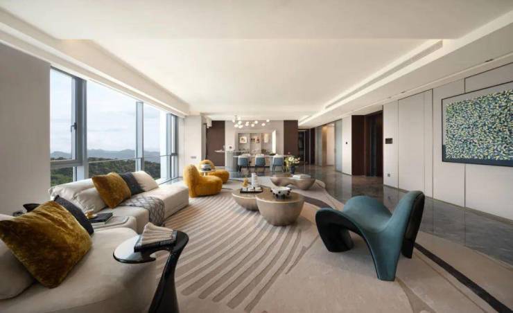 室内设计:汤臣一品软装设计团队(WSD世尊)与金永杰联袂,以水墨灰调、270°转角落地窗、LDK一体化空间,实现艺术与功能的平衡。