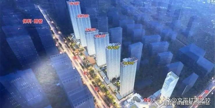 保利琅誉即保利城四期一共6栋房子分为AB两个区—-B区北片项目,共四栋住宅楼,其中1#38F,2#32F,3#25F,4#31F,2、3、4#都有架空层。保利琅誉一共360户,车位配比1:1.09。A区南片有2栋 住宅和商业5#32F和6#32F