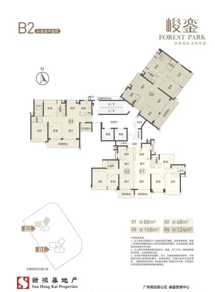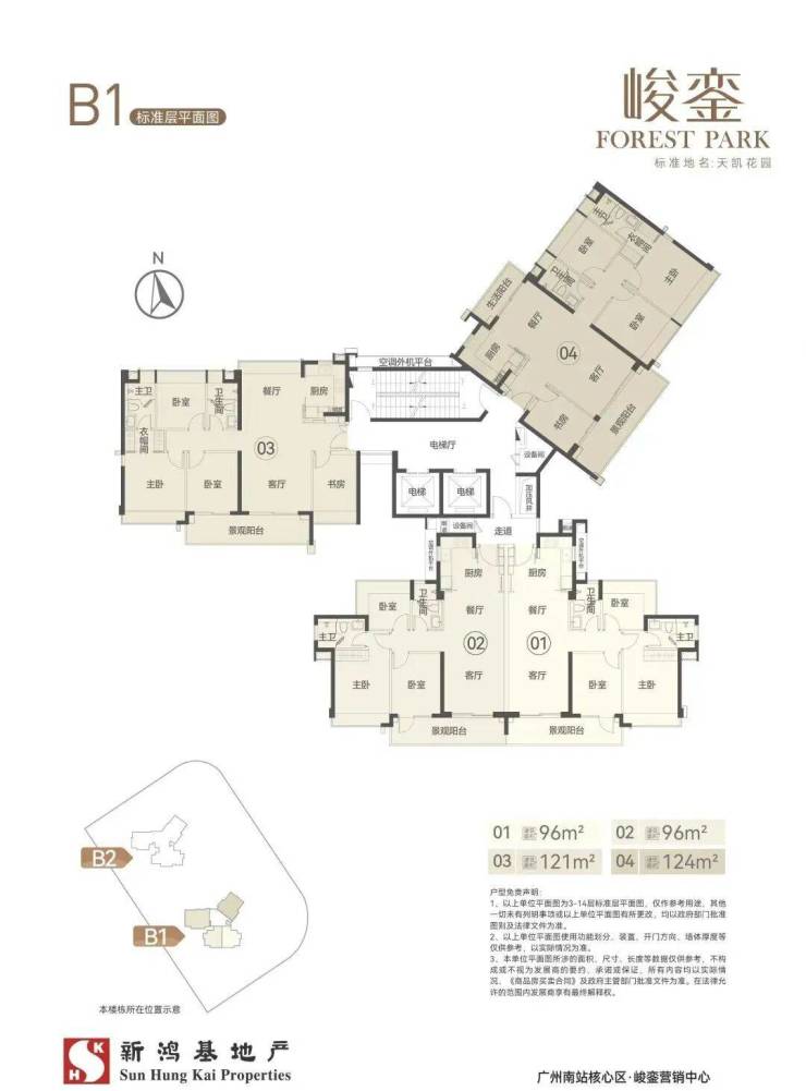 住宅项目分南北组团开发,整体预计约1300套单元。距离广州南站约400米,约5分钟步行距离,有效减少轨道列车及周边车辆干扰。首推北组团B1#、B2#楼栋。B1#和B2#均为两梯四户设计,高24-25层,总货量约186套。