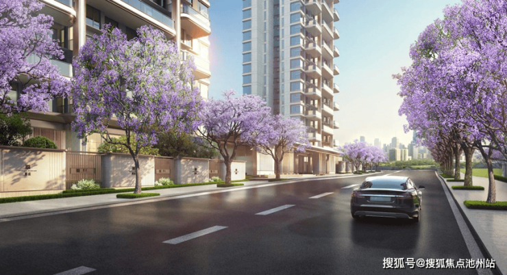 氛围营造方面,项目借鉴迈阿密1428 BRICKELL打造都市绿洲的理念,让业主从归家第一刻起便沉浸于度假式体验之中。从小龙坎正街进入项目,眼前焕然一新,归家之路沿途运用石材搭配精致绿化,结合行道树,形成舒心的林荫大道,归家仪式感自此徐徐展开。